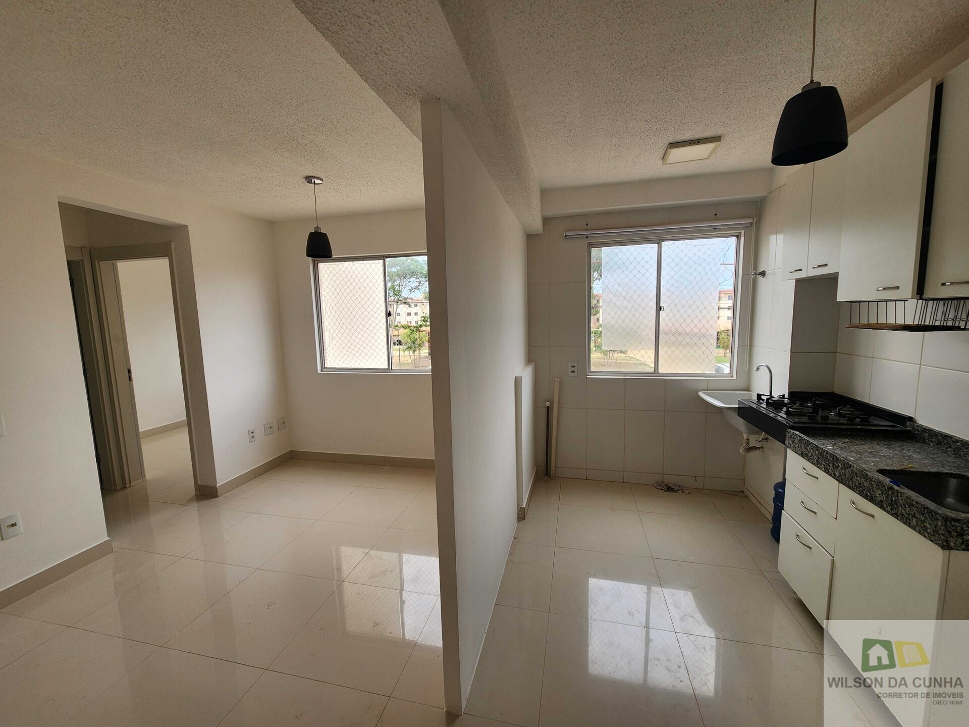 Apartamento 2 quartos com porcelanto e armários na cozinha. Segundo pavimento